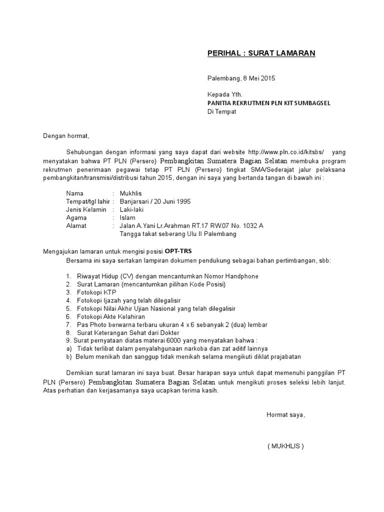 Berikut contoh surat lamaran kerja yang baik dan benar serta dapat djadikan referensi utama.