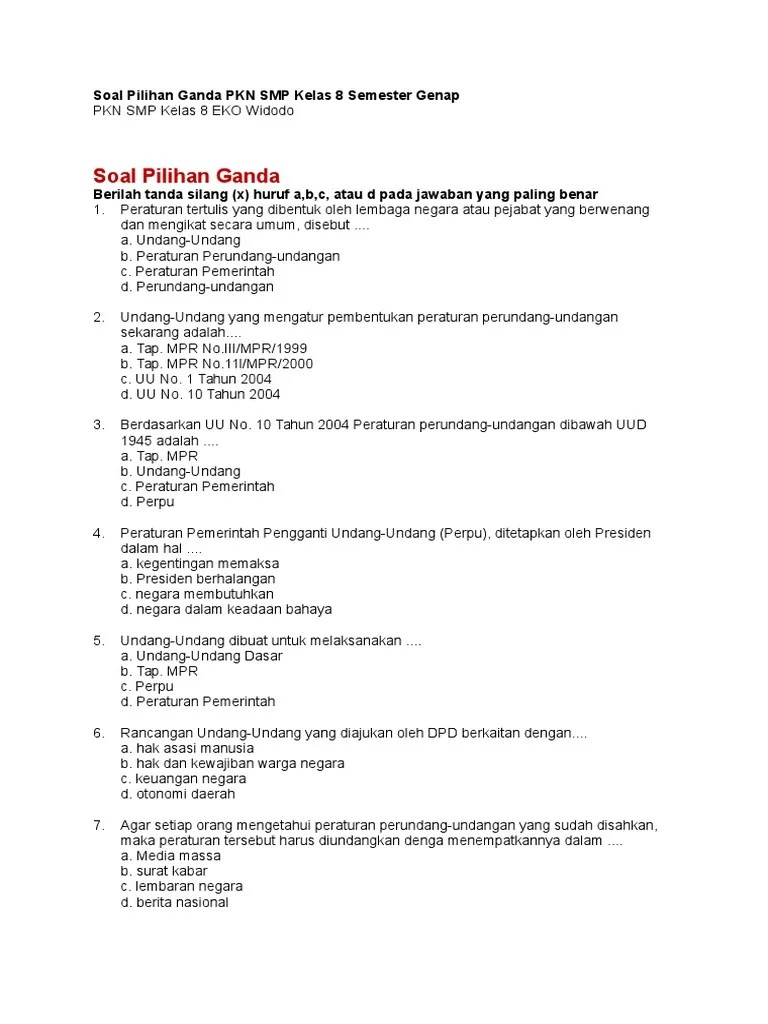 Latihan Soal Pilihan Ganda Pkn Materi Proses Pembuatan Peraturan Perundangan - Contoh Peraturan Pemerintah Pengganti Undang Undang - Soal pilihan ganda secara umum terdiri atas pertanyaan dan.